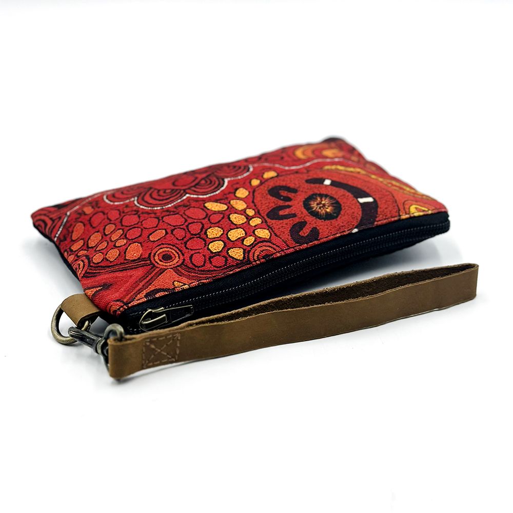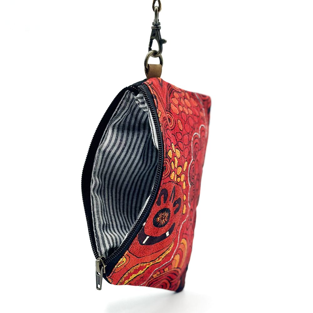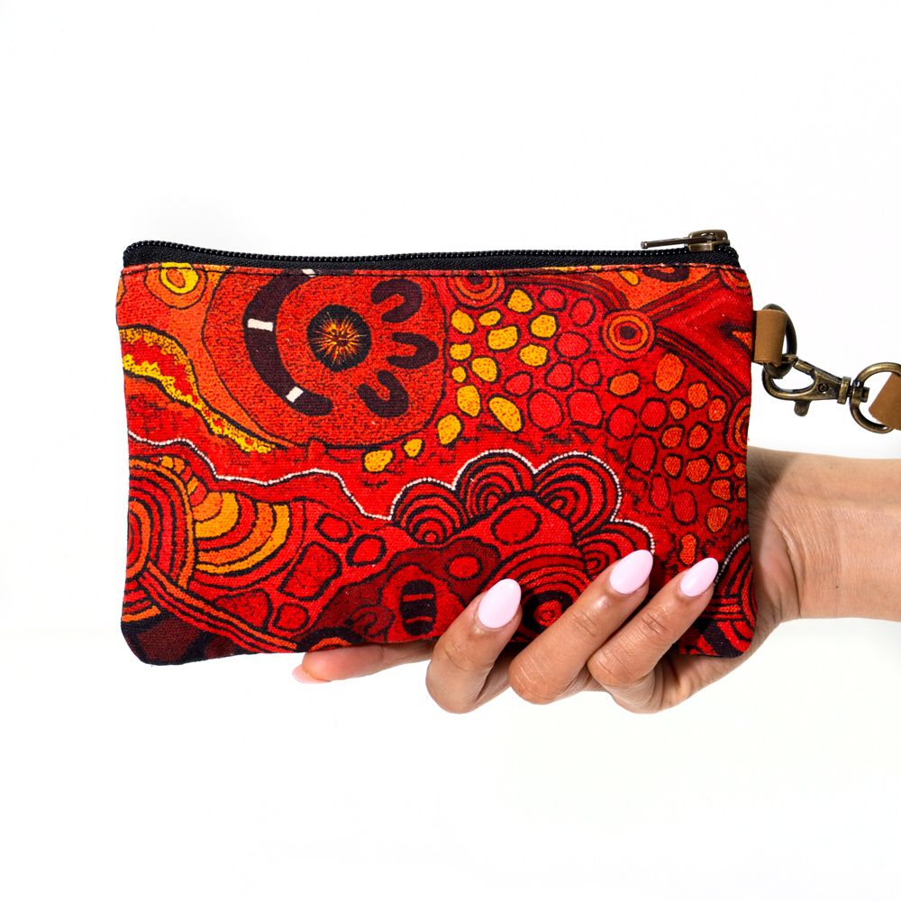 This piece tells the story of Yilpis grandfather and the hailstorm that killed him. As a young man he was stubborn and didn't listen to the elders that a big storm was coming. He went out hunting before the storm. He also wanted to perform a ceremonial dance to ward of the storm. He took the ceremonial dancing sticks, but didn't return. The rest of the clan hid in the caves to wait out the storm and afterwards, the women went searching for the man but could not find him. In another area of the country, the children were gathering bush foods and swimming in the newly filled rockholes. Quite by accident, they happened upon the body of the young man. He had died during the storm. This story is told to the children to teach them the importance of listening to their elders.