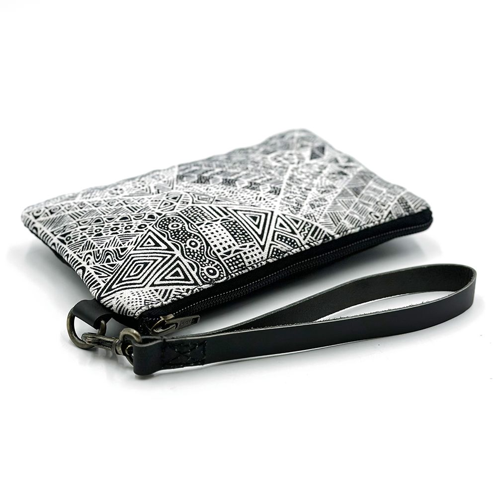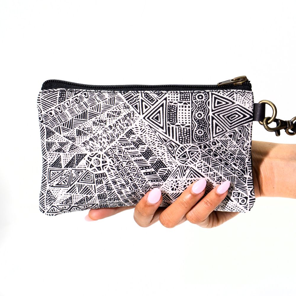 Simplicia paints a story about an old lady who travelled around with her six kids looking for food and water. When the old lady couldnt find anything, she started making a hole and then the water came out. Lots of different animals came to the waterhole. The old lady made four islands like Darwin, Bathurst and here (Melville Island). She made the waters and all the sea animals like crabs, barramundis, mud mussels, longbums, stingrays, turtles, dugongs, fishes that were good for food. Then she made the islands. The old lady travelled with her kids on her back, making the islands. Old and young people came and they were making a fire and dancing around it. They were happy for all the water everywhere.