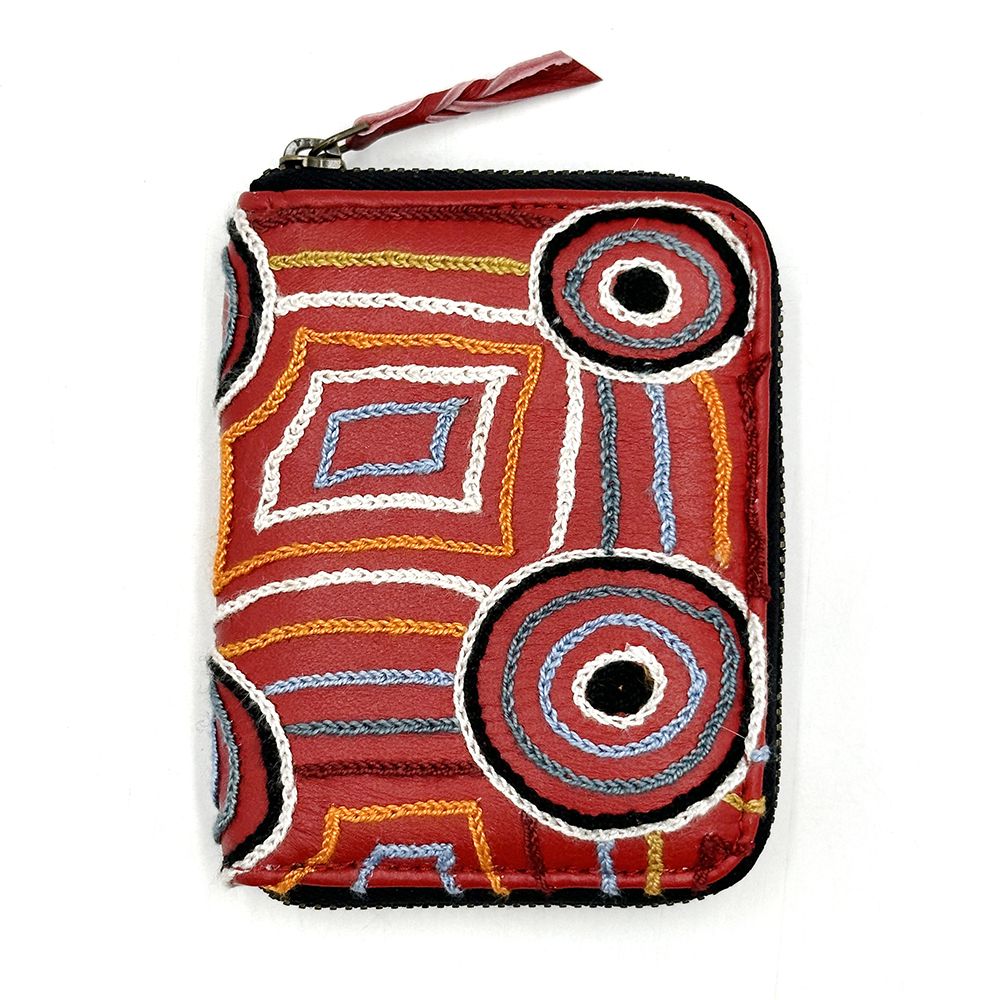 This painting depicts linear pattern 'body paint design'. The Aboriginal women paint their breasts and shoulders for ceremonies, which include song and dance used to tell their ancient stories. The concentric circles symbolise ceremonies or meeting place.
