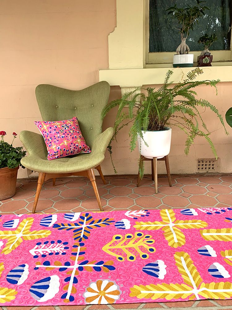 The community of Ampilatwatja made a conscious decision not to paint altyerr dreaming stories. The artists paint their country where those stories sit. This artwork shows some of the many plants in the landscape. these plants have a high level of significance for the local people, being useful as medicine, or as food for people or for wildlife.