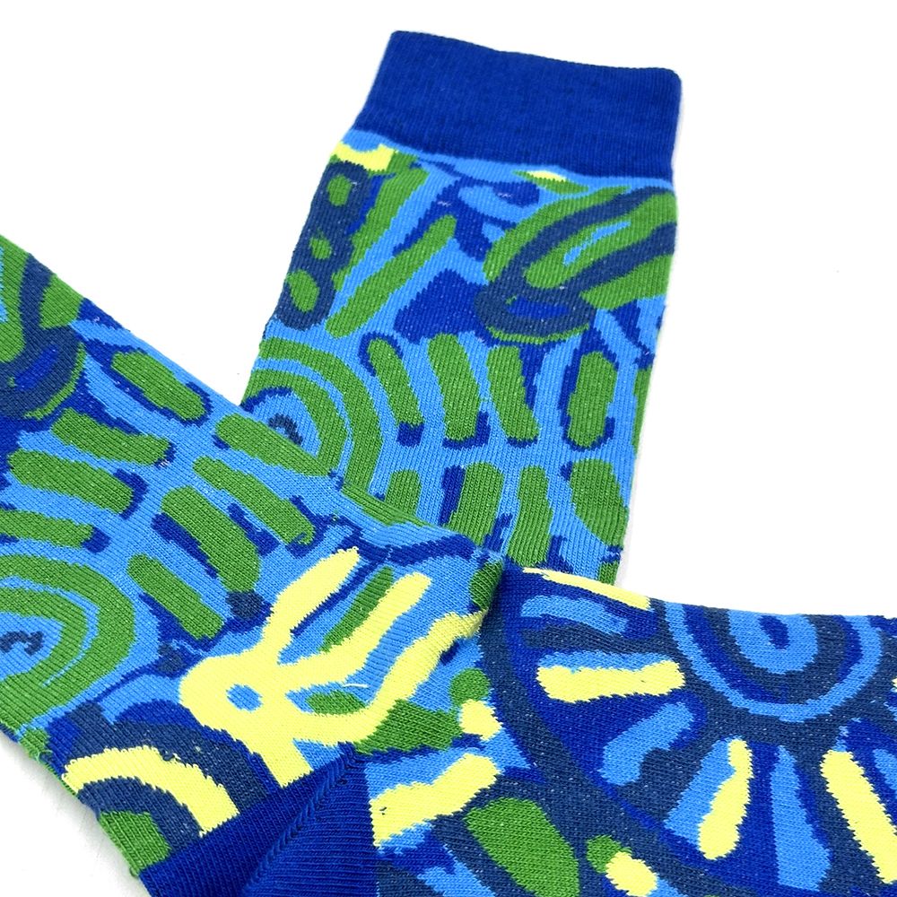 When Ngurunderi travelled through what is now Ngarrindjeri country he came down the Murray River in his canoe. At that time it was just a small stream. Ngurunderi was looking for his two wives who had run away from him and was following Pondi, the big Murray Cod who had created the twists and turns of the river when sweeping his huge tail from side to side. Ngurunderi was trying to spear Pondi all the way along the journey.Together they formed the Murray River, lakes and landforms and everything in Ngarrindjeri Country. Ngurunderi made the rain that feeds the river and the country. With the rain came the rainbow, which can be seen in this painting. Ngurunderi also made the Ngarrindjeri people, who live along and around the River Murray, lakes, the Coorong region and across to Cape Jervis and the southern regions of what is now Adelaide. Ngurunderi travelled with his family and they also played a part in the creation of Ngarrindjeri country. Ngurunderi taught everyone the lore, dance, song, how to hunt and live and everything they needed to survive in their country. When they reached Lake Alexandrina Nepele, Ngurunderi�s brother in law, helped spear and kill Pondi. Ngurunderi cut Pondi into many pieces, each piece creating a new species of fish that now populates the river system. Ngurunderi never did catch his wives who drowned when crossing to Kangaroo Island, which was still joined to the mainland at that time. At this point Ngurunderi joined the spirit world becoming a star in the Milky Way. In July 2015 Cedric was given a grant by Arts SA. for professional development and cultural research. With the support of Better World Arts, Cedric pursued an intensive program of studying archived information at the South Australian Museum. He spent time talking to Ngarrindjeri elders and researching his Ngarrindjeri heritage in some depth. During the same time period Cedric undertook some developmental workshops focused on his painting. These workshops provided life drawing, brush techniques and colour theory components, providing tools and knowledge for Cedric to include in the technical sides of his art. The results of these inputs into Cedric�s artistic and cultural development were immediately evident. Cedric continues to develop as an artist.