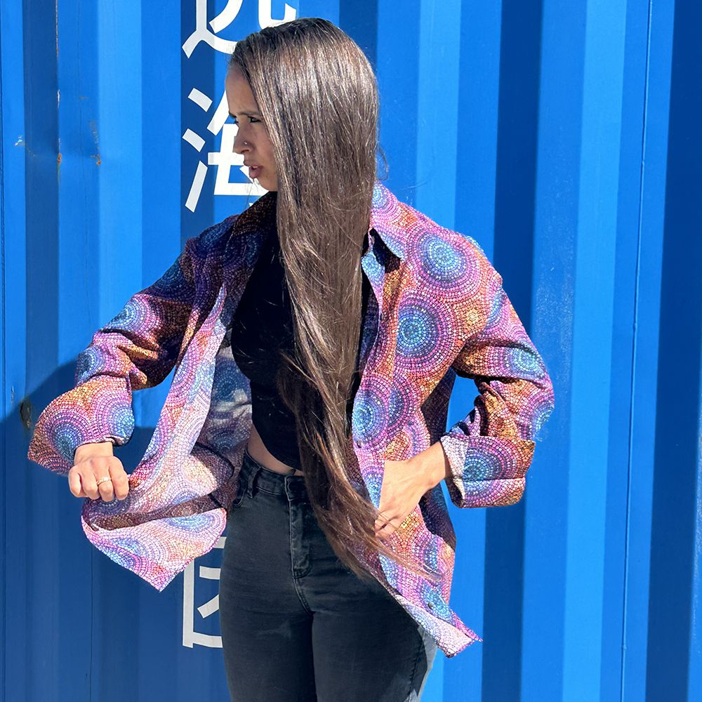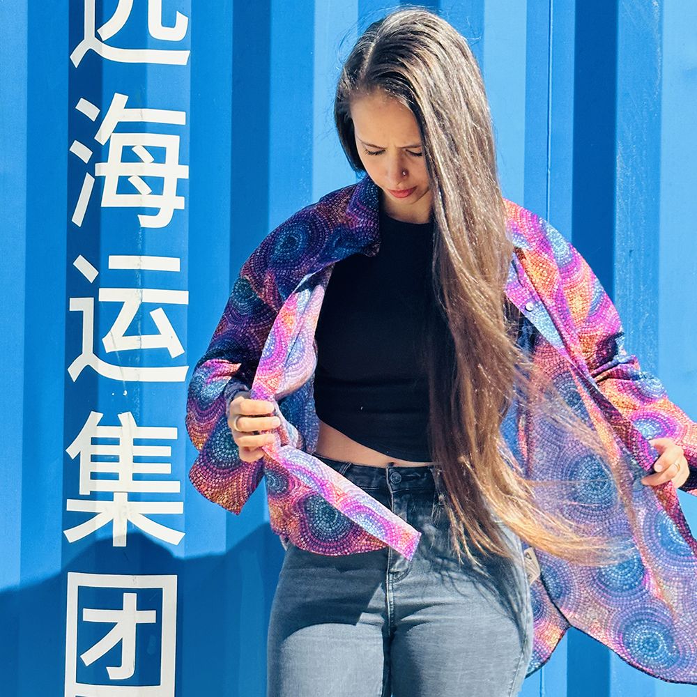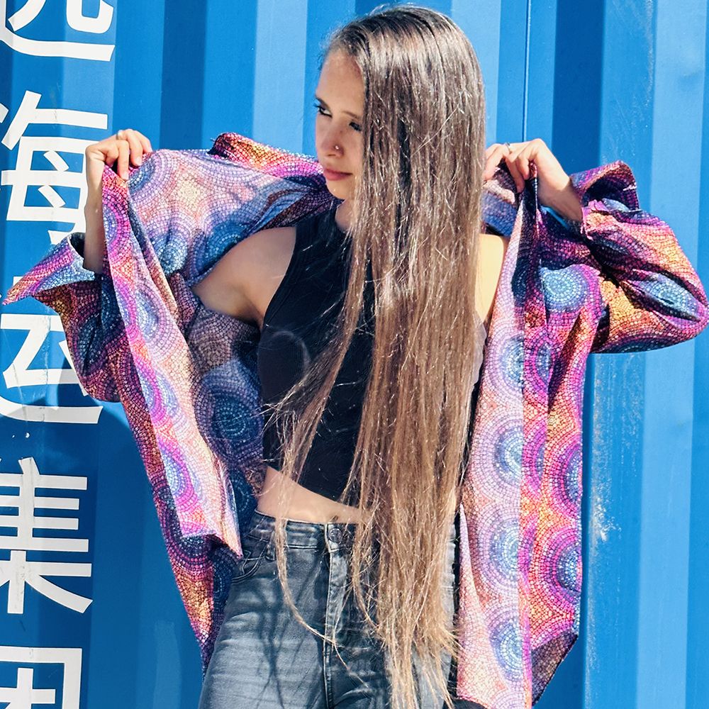 Olivia Wilson is modelling her own artwork design on this shirt.