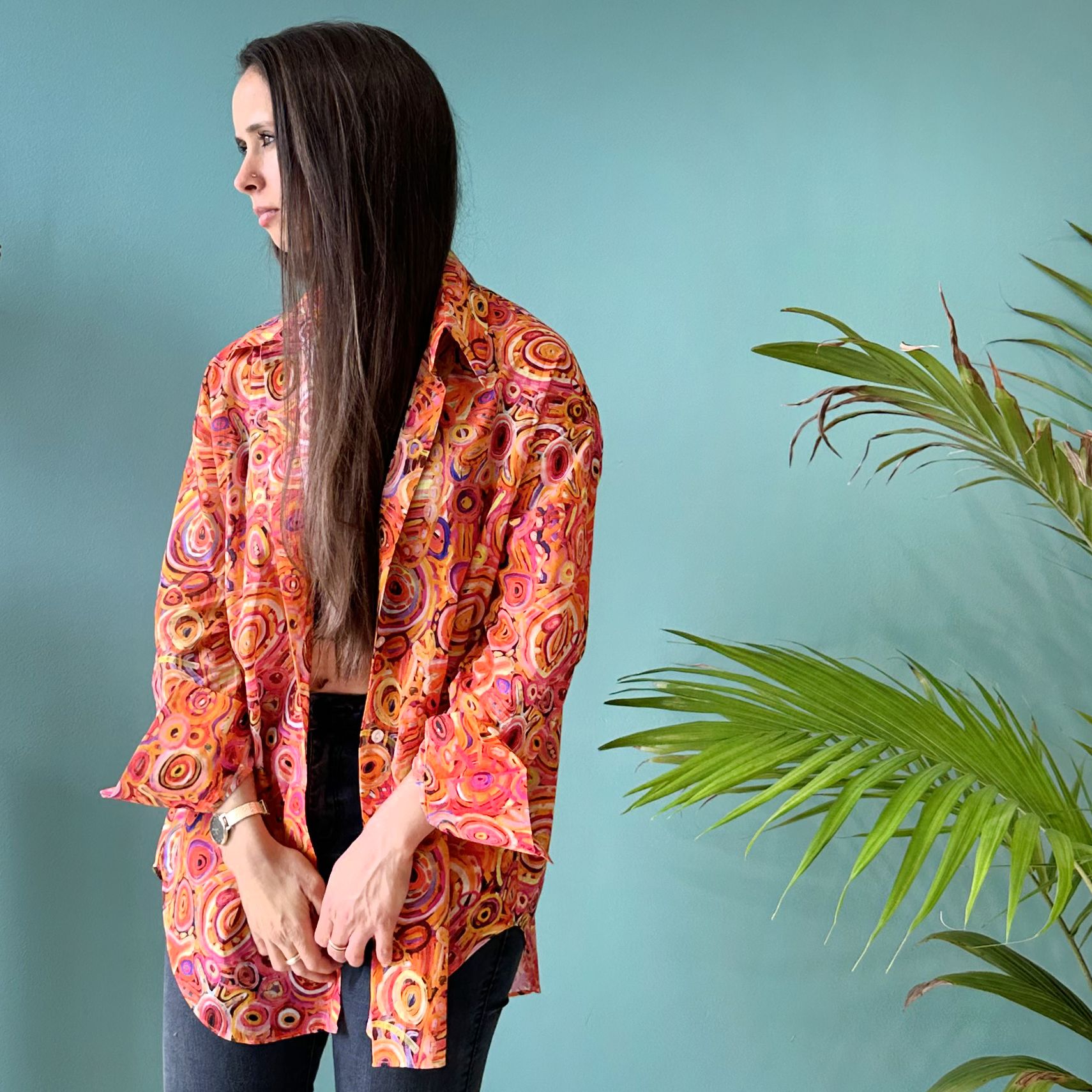 Fine Organic Cotton Voile, relaxed fit long sleeved shirt with shell buttons. Plastic Free, including packaging.