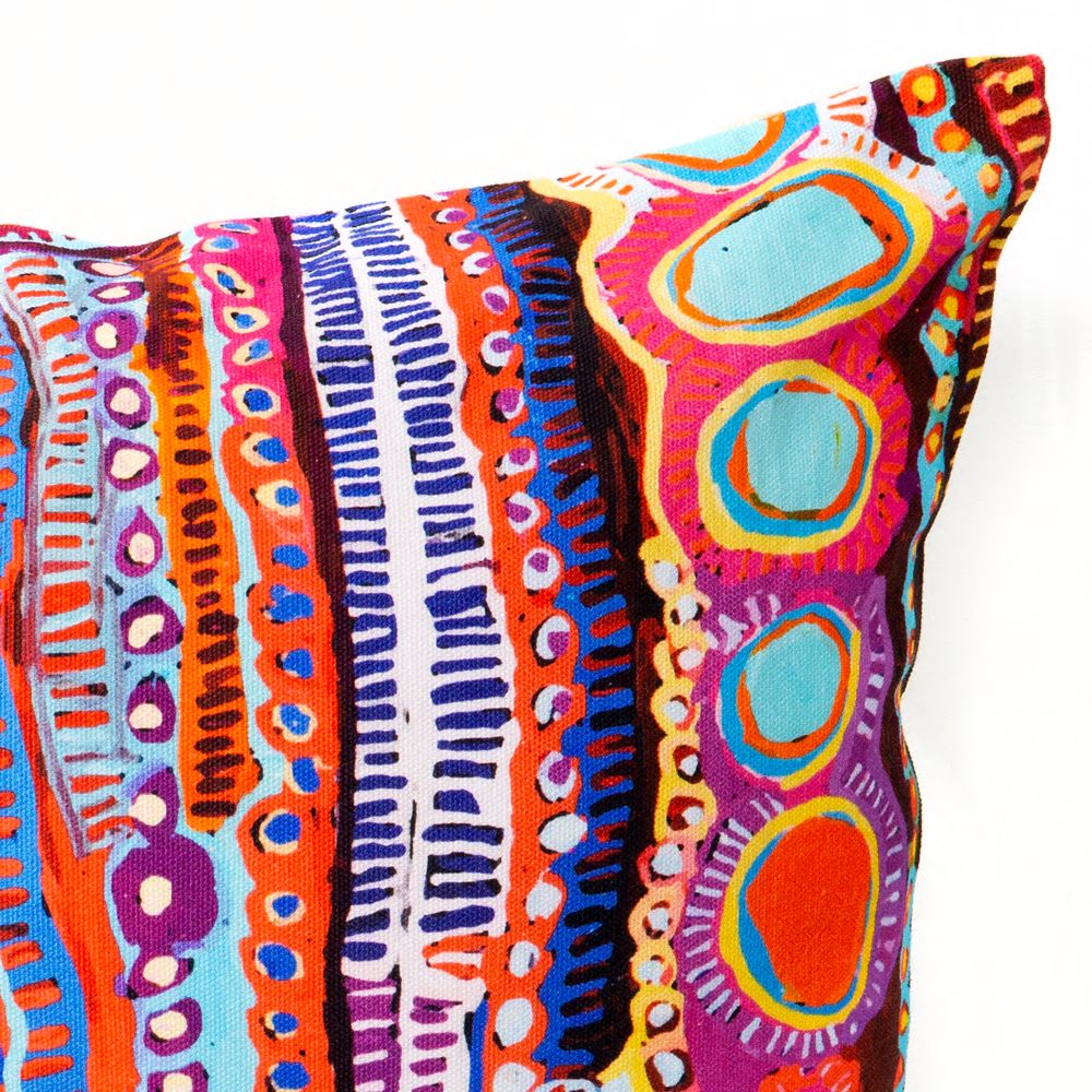 Two dog ancestors, a Jampijinpa and a Napangardi, travelled from the west to the east. They dug holes in the ground and created ‘warnirri’ (rockholes) and ‘ngapa’ (waterholes) as they went. The two dogs separated. Eventually Jampijinpa became lonely and howled for Napangardi in the south. She came running to him, and they married each other at Ngarnka.