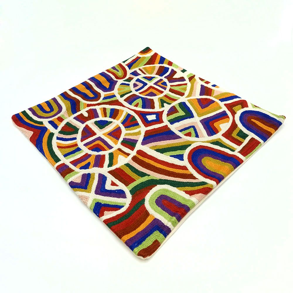 Ngayuku Ngura means My Place. Samuel uses an extensive palet of colours to paint the country surrounding Kalka and Pipalyatjara. His paintings feature the various land formations from that area - rockholes, creeks and hills. His land is a sacred mens rockhole, so sacred that the name is not allowed to be written down or spoken about.