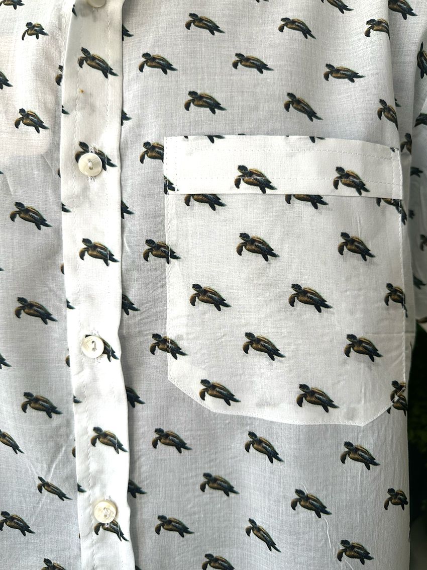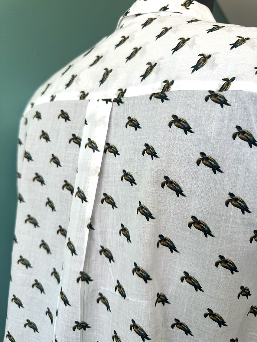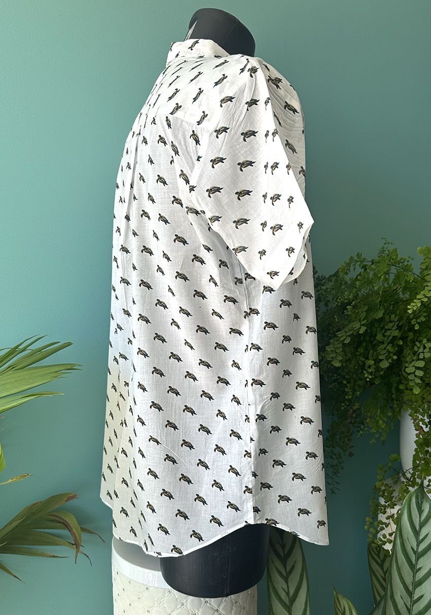Fine Organic Cotton Voile, relaxed fit shirt with shell buttons. Plastic Free, including packaging.