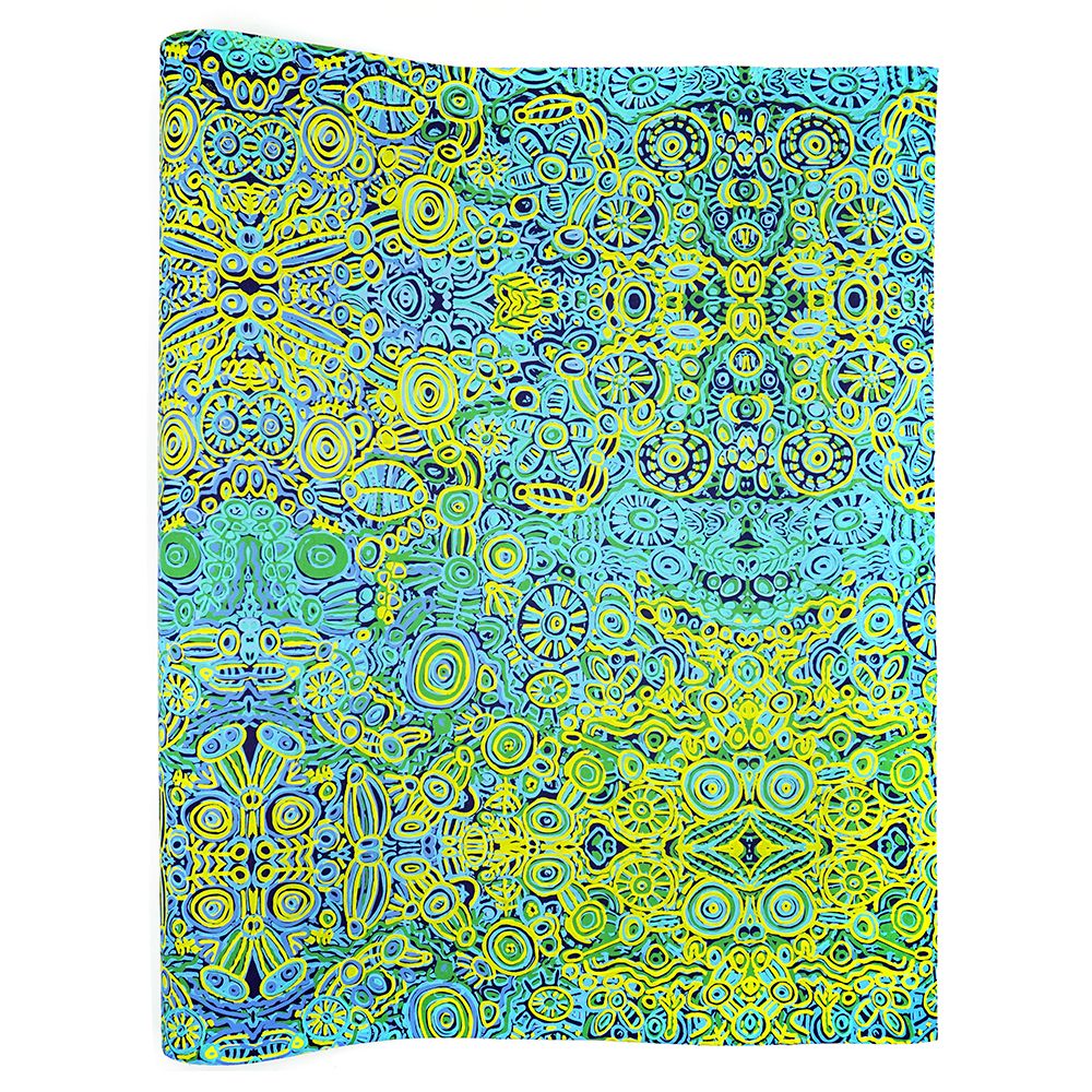 When Ngurunderi travelled through what is now Ngarrindjeri country he came down the Murray River in his canoe. At that time it was just a small stream. Ngurunderi was looking for his two wives who had run away from him and was following Pondi, the big Murray Cod who had created the twists and turns of the river when sweeping his huge tail from side to side. Ngurunderi was trying to spear Pondi all the way along the journey. Together they formed the Murray River, lakes and landforms and everything in Ngarrindjeri Country. Ngurunderi made the rain that feeds the river and the country. With the rain came the rainbow, which can be seen in this painting. Ngurunderi also made the Ngarrindjeri people, who live along and around the River Murray, lakes, the Coorong region and across to Cape Jervis and the southern regions of what is now Adelaide. Ngurunderi travelled with his family and they also played a part in the creation of Ngarrindjeri country. Ngurunderi taught everyone the lore, dance, song, how to hunt and live and everything they needed to survive in their country. When they reached Lake Alexandrina Nepele, Ngurunderi’s brother in law, helped spear and kill Pondi. Ngurunderi cut Pondi into many pieces, each piece creating a new species of fish that now populates the river system. Ngurunderi never did catch his wives who drowned when crossing to Kangaroo Island, which was still joined to the mainland at that time. At this point Ngurunderi joined the spirit world becoming a star in the Milky Way. In July 2015 Cedric was given a grant by Arts SA. for professional development and cultural research. With the support of Better World Arts, Cedric pursued an intensive program of studying archived information at the South Australian Museum. He spent time talking to Ngarrindjeri elders and researching his Ngarrindjeri heritage in some depth. During the same time period Cedric undertook some developmental workshops focused on his painting. These workshops provided life drawing, brush techniques and colour theory components, providing tools and knowledge for Cedric to include in the technical sides of his art. The results of these inputs into Cedric’s artistic and cultural development were immediately evident. Cedric continues to develop as an artist.