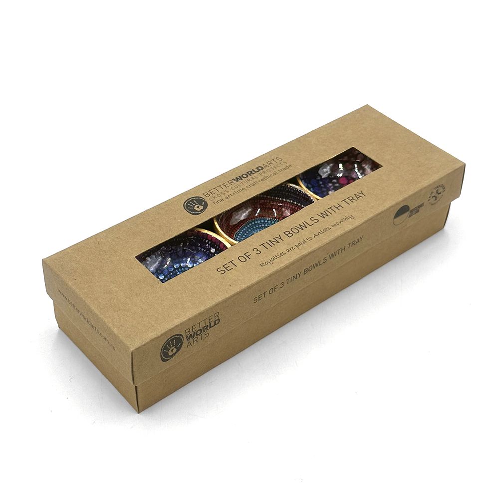 TINY BOWLS - SET OF 3 - PLATTER: 23X7.5X2 CM, BOWLS: L 6.5, H 3.5 CM-OWI766