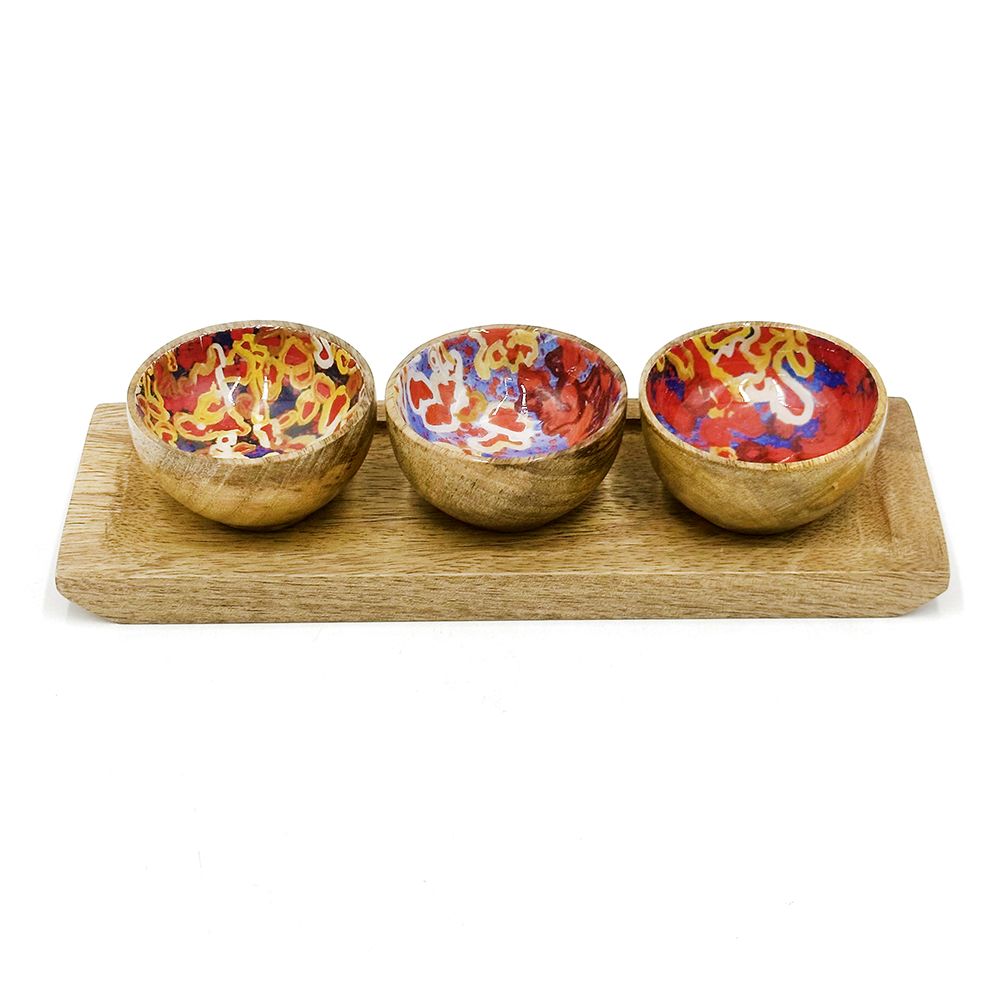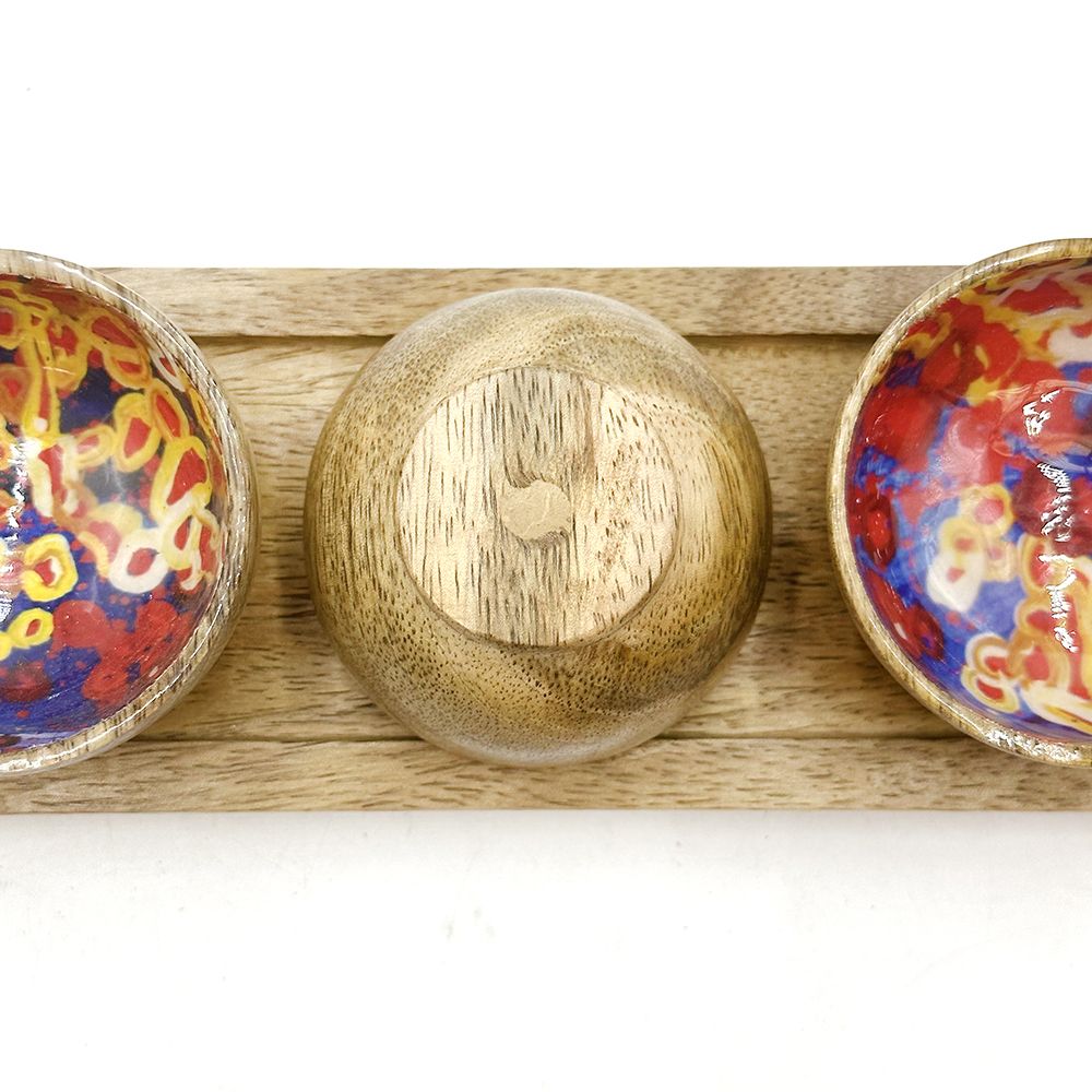 Tiny Bowls - Set of 3 - Platter: 23x7.5x2 cm, Bowls: L 6.5, H 3.5 cm-SJN616