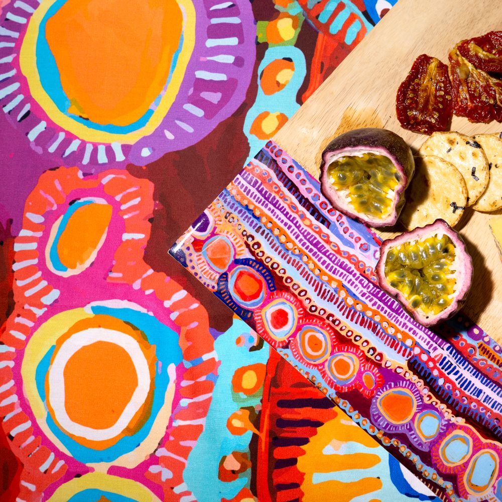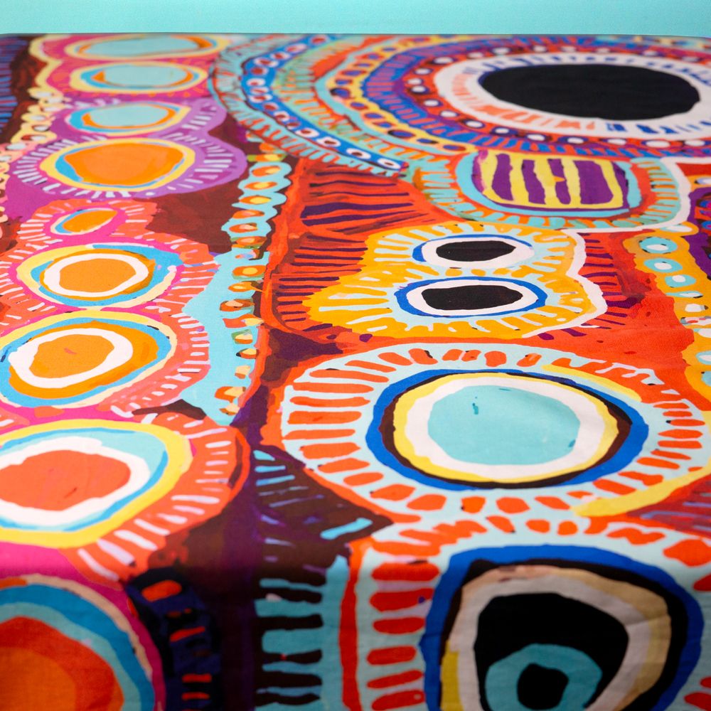 Two dog ancestors, a Jampijinpa and a Napangardi, travelled from the west to the east. They dug holes in the ground and created ‘warnirri’ (rockholes) and ‘ngapa’ (waterholes) as they went. The two dogs separated. Eventually Jampijinpa became lonely and howled for Napangardi in the south. She came running to him, and they married each other at Ngarnka.