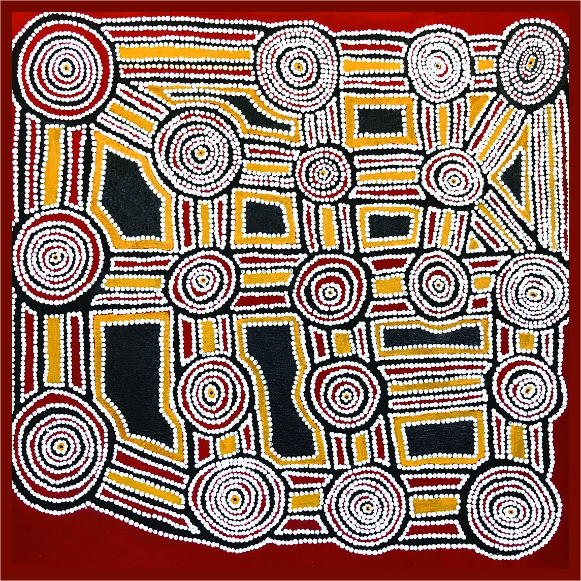 Surparkra is the son of Ikuntji Artists founding member Narputta Nangala Jugadai and internationally acclaimed artist Timmy Jugadai. Surparkra started painting when he was a teenager using cut up old canvas tents and paints from his school. He learned the skills from his mother and Dolcy Nangala (Timmys ex-wife). In 1992, Surparkras mother and other women painters of Haasts Bluff founded Ikuntji Womens Centre. Surparka started seriously painting in 2010. He paints the Wanampi Tjukurrpa (snake Dreaming) at Karrinyarra and also the Malu Tjukurrpa (kangaroo Dreaming) at Yatibilong (north of Papunya).