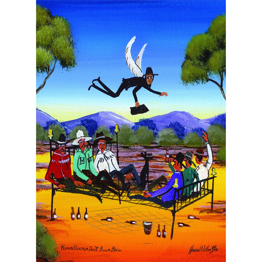Howard William Steer developed the foundation for what he calls "Story Art, where each painting tells its own story. A prime example is the "Flying Doctor" series featuring a winged, black-suited saviour complete with top hat and bag. Howard's style is classified as naive realism.